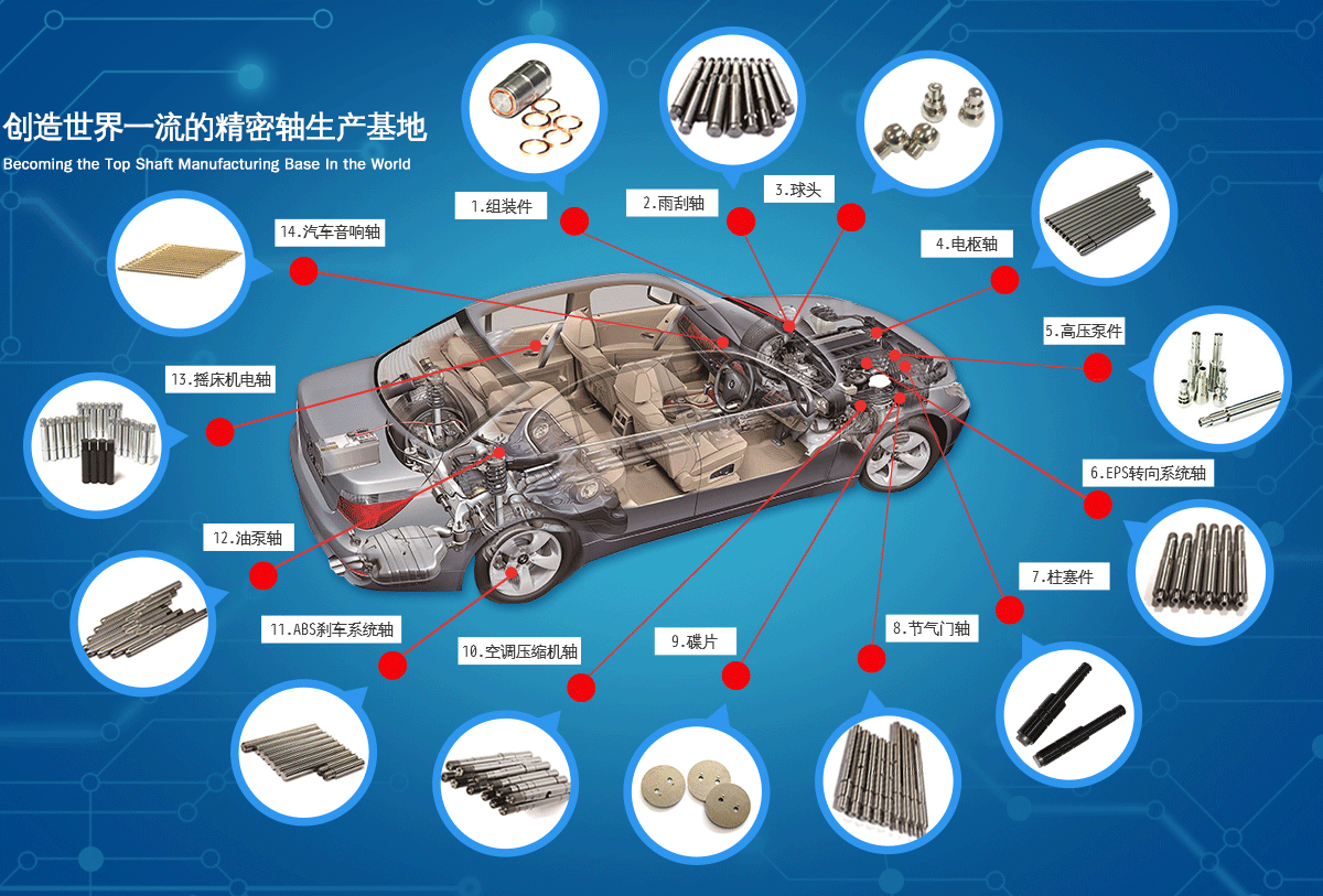 公司著眼于發(fā)展、創新,每年均投入大量人力和物力進行新產品研發(fā)及技術改造,當前公司產品包括各類汽車軸、精密馬達軸、工業零部件等近20個系列千余產品,遠銷世界各地,深受客戶信賴。